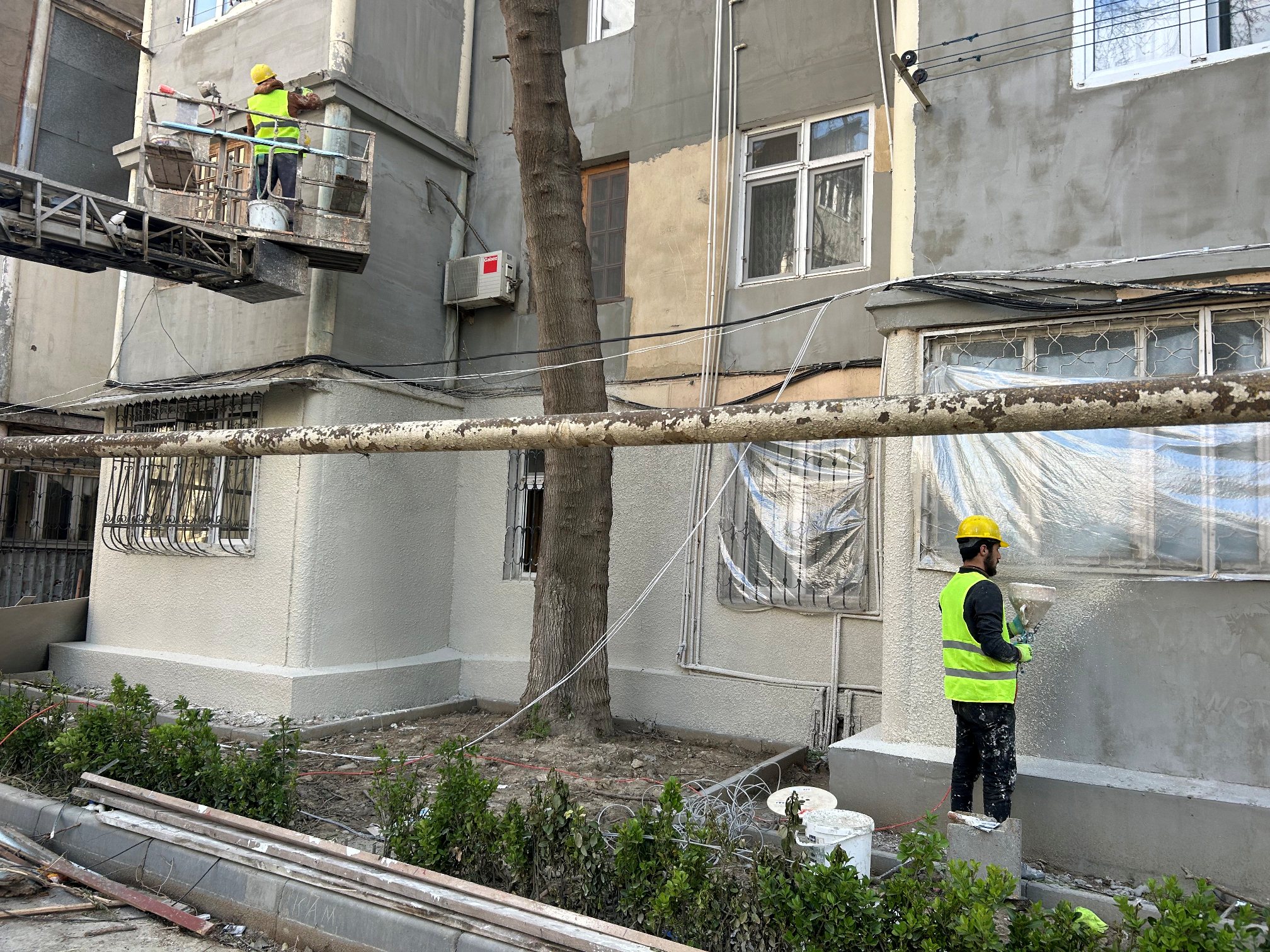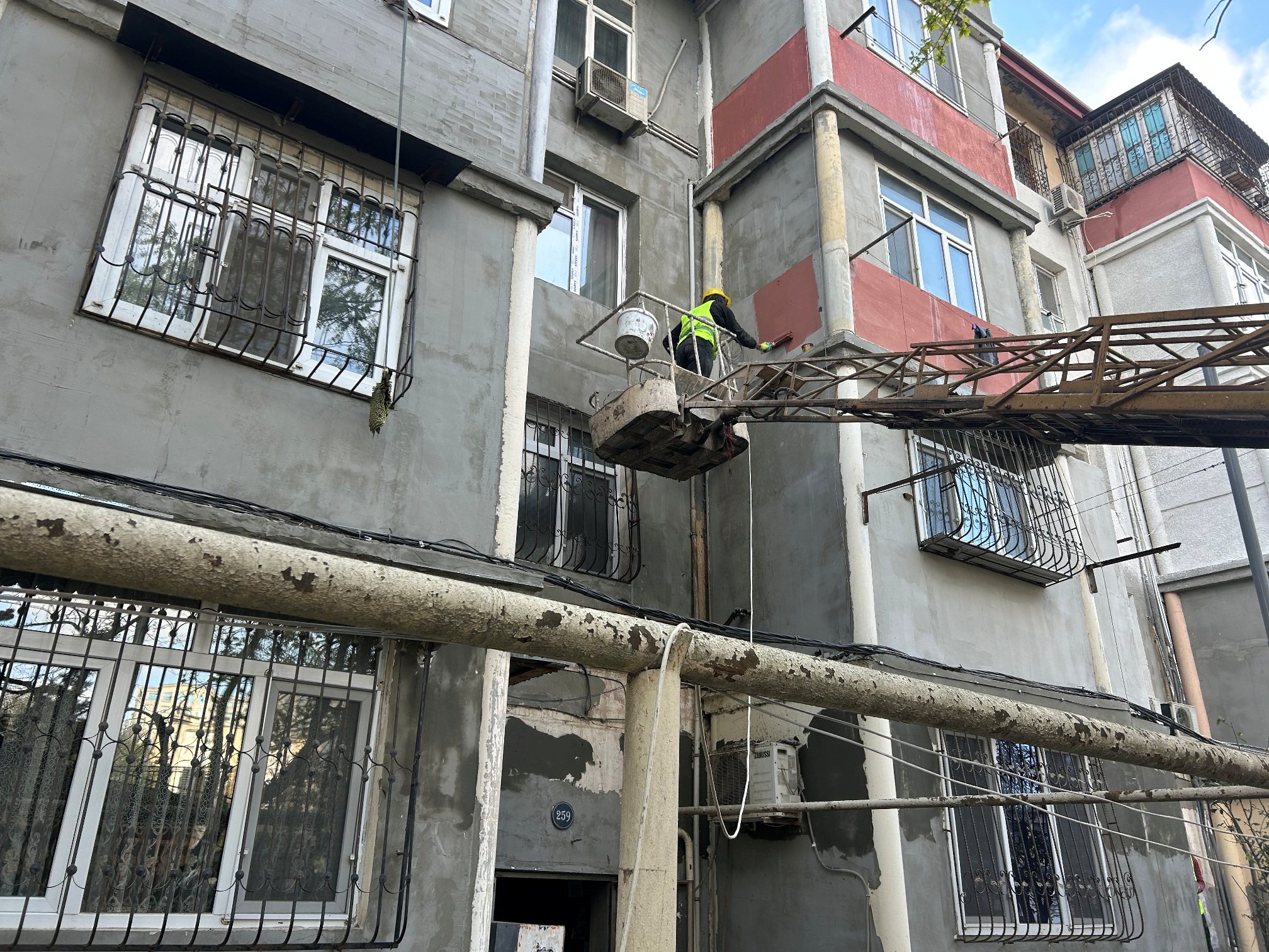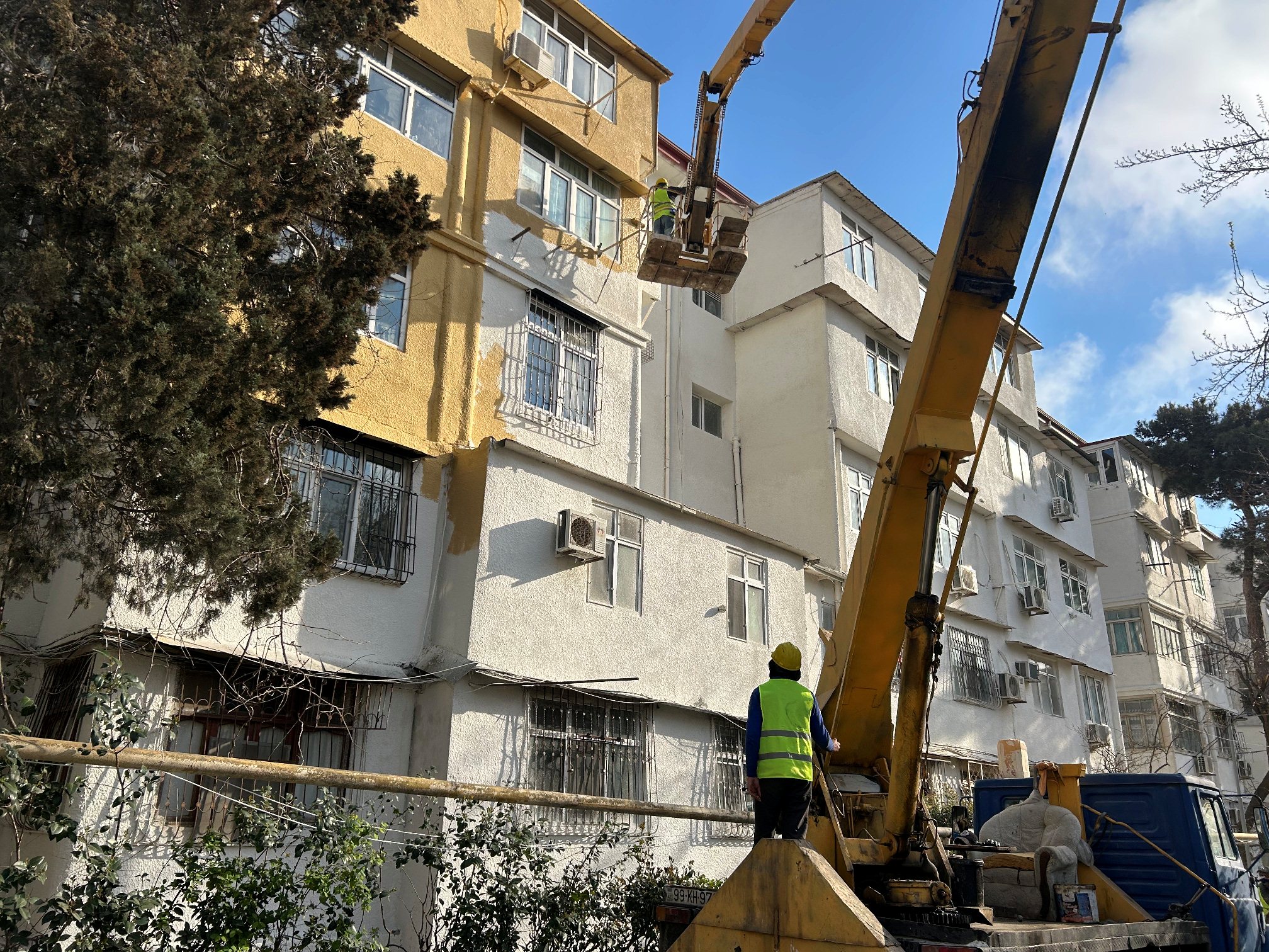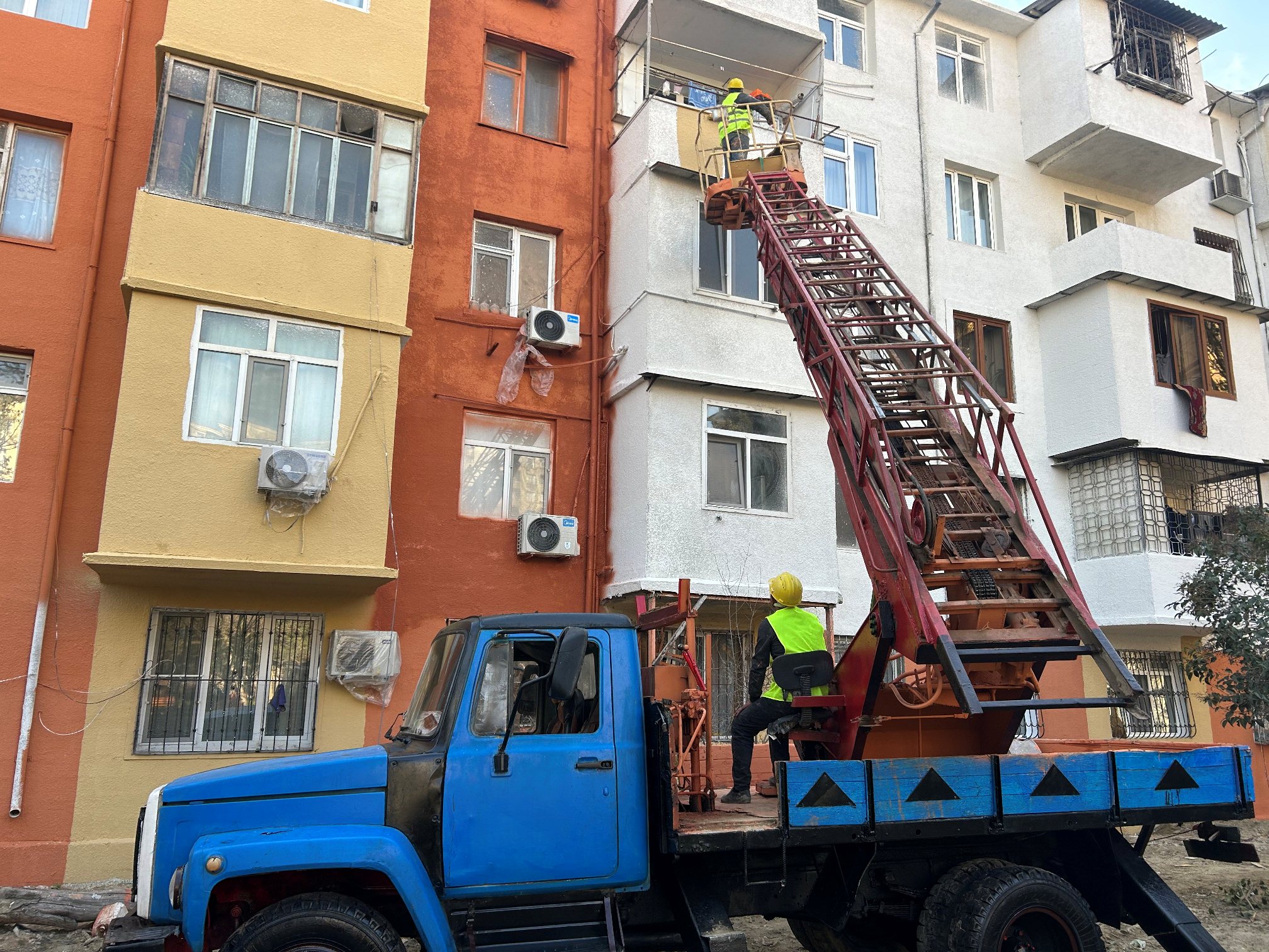 Qeyd olunan ünvanlarda binaların xarici divarları köhnə suvaq qatlarından təmizlənərək yenidən suvanır və ardınca rənglənmə işləri aparılır. Eyni zamanda, pilləkən qəfəsələrində də suvama və boyama işləri görülür, köhnəlmiş pilləkənlər bərpa edilərək sakinlərin istifadəsi üçün tam təhlükəsiz və səliqəli vəziyyətə gətirilir.